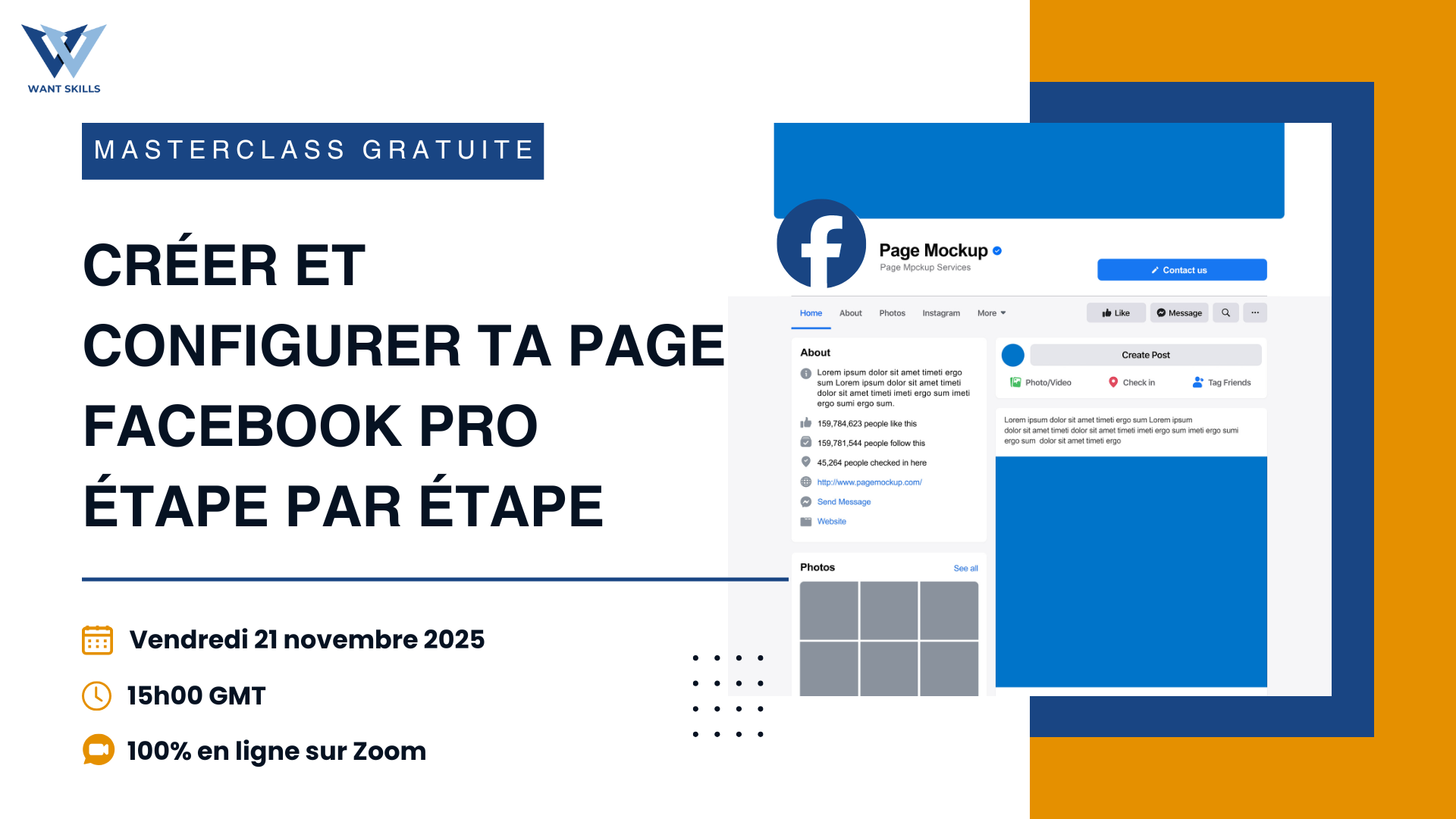 Dans cette masterclass Want Skills, découvre comment créer et configurer une page Facebook professionnelle qui attire, inspire confiance et engage ton audience.